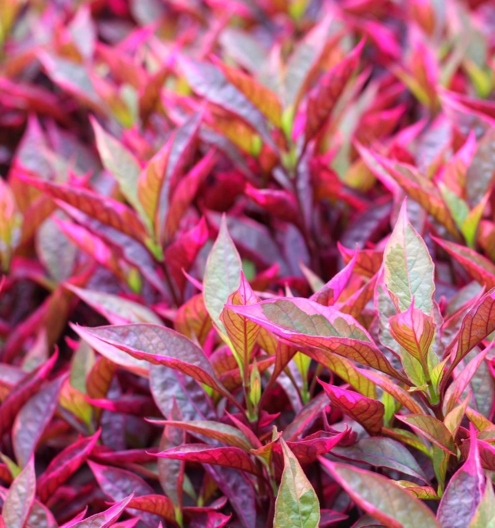 Broket bladverk med rosa vårskjær, kremhvit og grønn på sommer og rødrosa ettersommer – nydelige røde vintergreiner!
